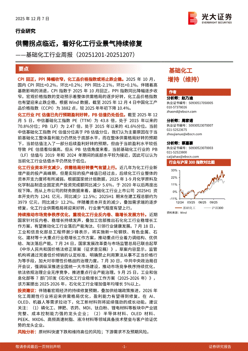基础化工行业:光大证券-基础化工行业周报:供需拐点临近,看好化工行业景气持续修复-251207