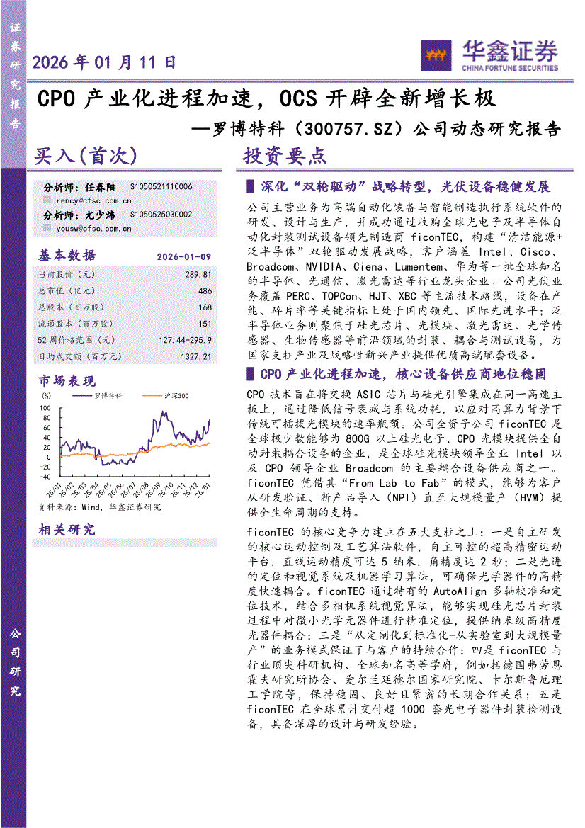 罗博特科:华鑫证券-罗博特科-300757-公司动态研究报告:CPO产业化进程加速,OCS开辟全新增长极-260111