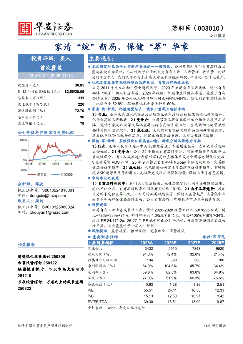 若羽臣:华安证券-若羽臣-003010-家清“绽”新局、保健“萃”华章-260415