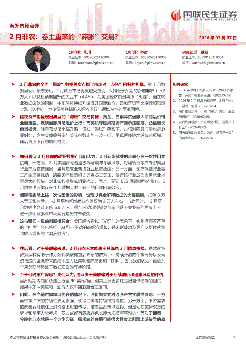 国联民生证券-海外市场点评:2月非农,卷土重来的“滞胀”交易?-260307