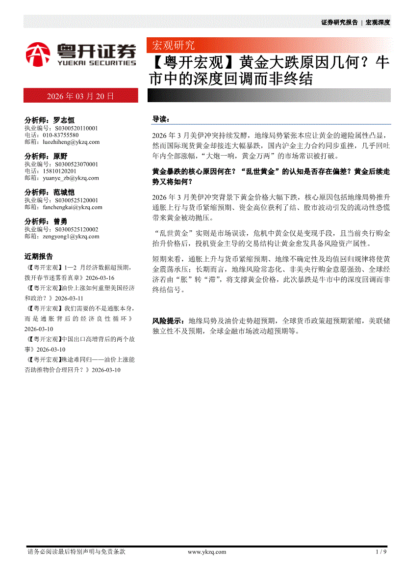 粤开证券-【粤开宏观】黄金大跌原因几何?牛市中的深度回调而非终结-260320