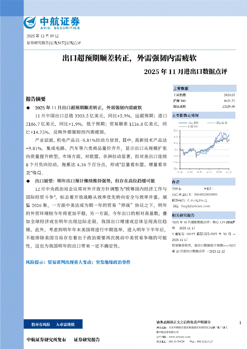 中航证券-2025年11月进出口数据点评:出口超预期顺差转正,外需强韧内需疲软-251209