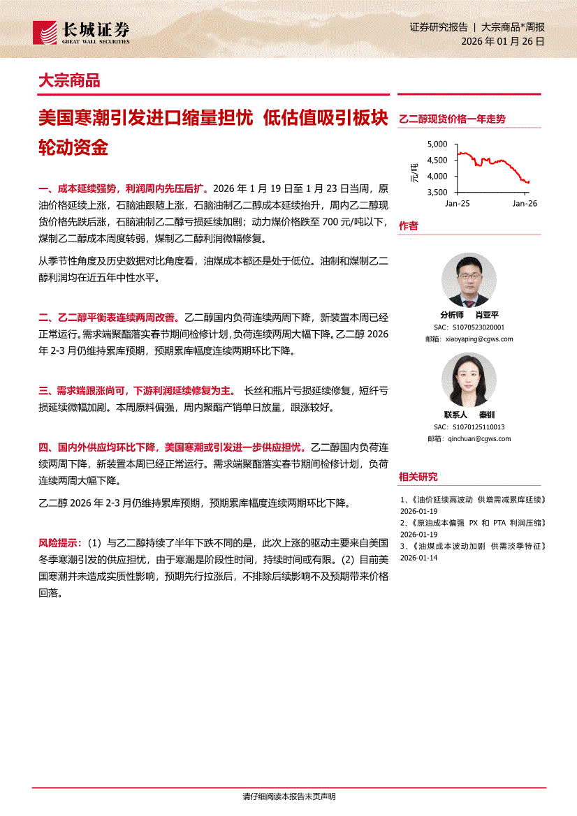 长城证券-大宗商品周报:美国寒潮引发进口缩量担忧,低估值吸引板块轮动资金-260126