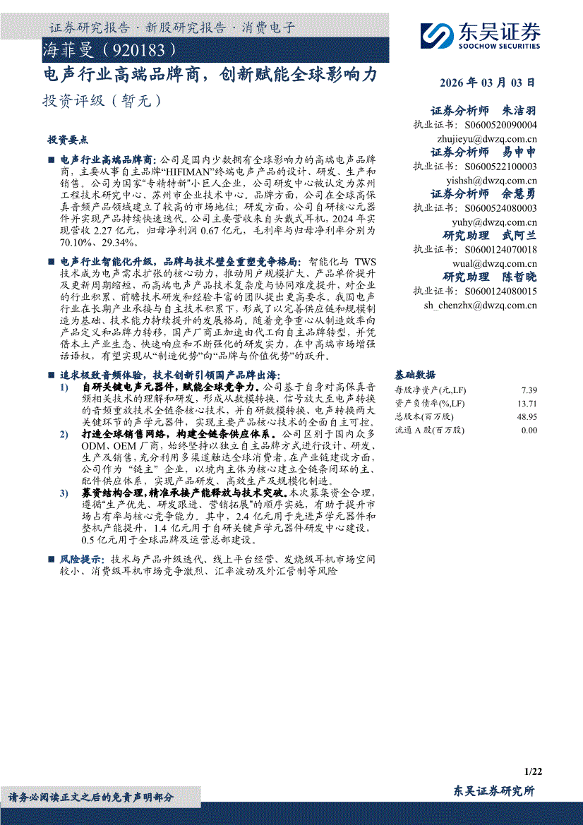 海菲曼:东吴证券-海菲曼-920183-电声行业高端品牌商,创新赋能全球影响力-260303