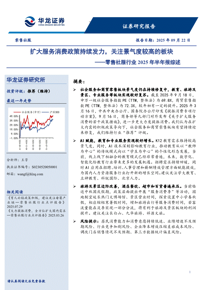 零售社服行业:华龙证券-零售社服行业2025年半年报综述:扩大服务消费政策持续发力,关注景气度较高的板块-250922