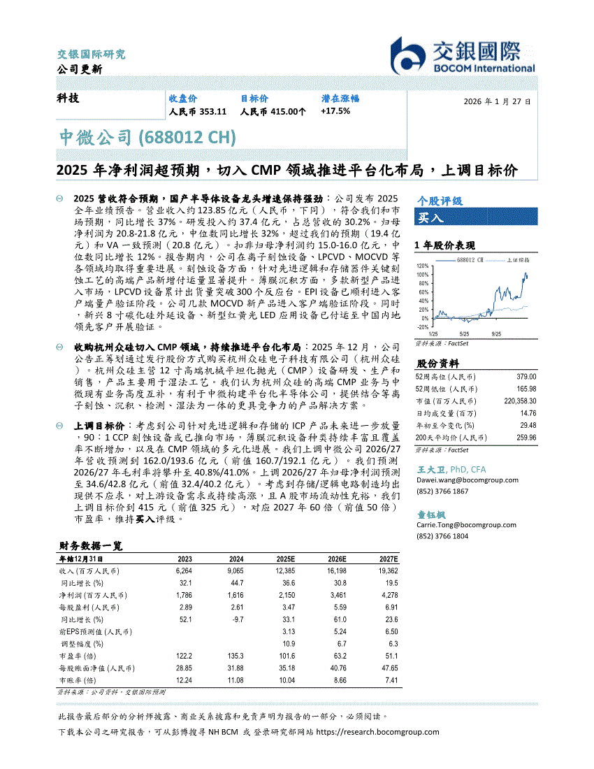 中微公司:交银国际-中微公司-688012-2025年净利润超预期,切入CMP领域推进平台化布局,上调目标价-260127