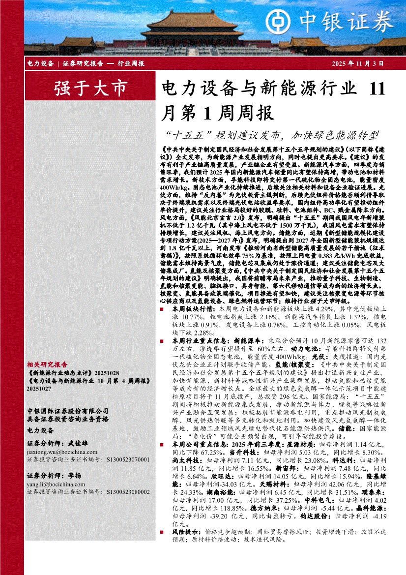 电力设备与新能源行业:中银国际-电力设备与新能源行业11月第1周周报:“十五五”规划建议发布,加快绿色能源转型-251103