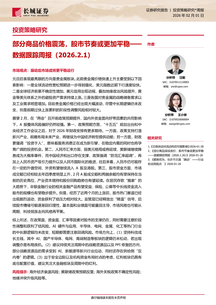 长城证券-投资策略研究:数据跟踪周报,部分商品价格震荡,股市节奏或更加平稳-260201