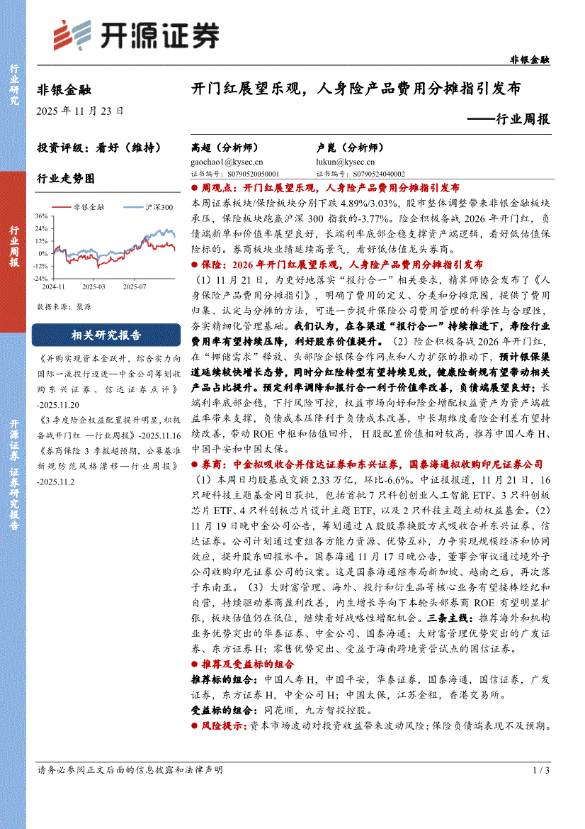 非银金融行业:开源证券-非银金融行业周报:开门红展望乐观,人身险产品费用分摊指引发布-251123