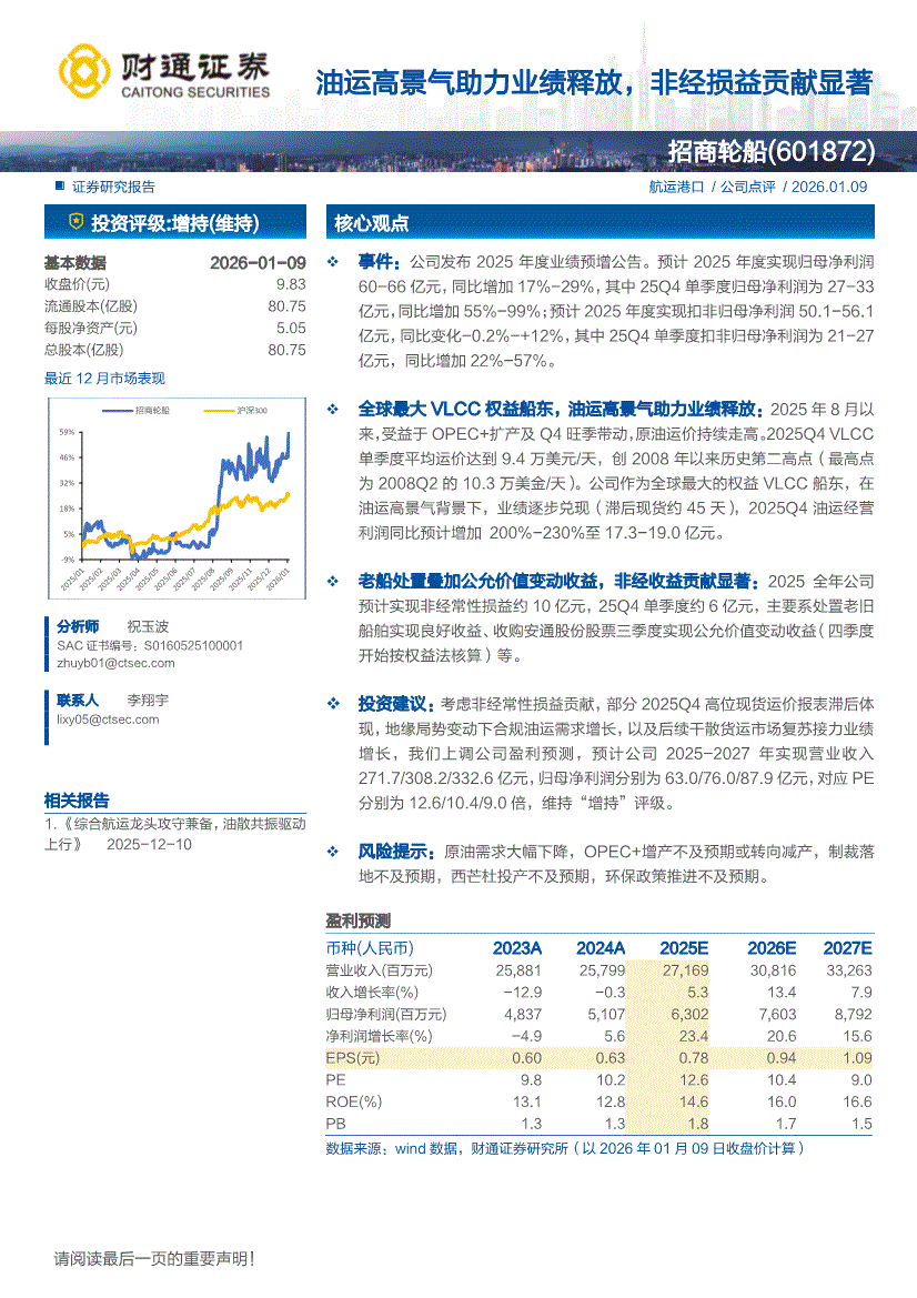 招商轮船:财通证券-招商轮船-601872-油运高景气助力业绩释放,非经损益贡献显著-260109