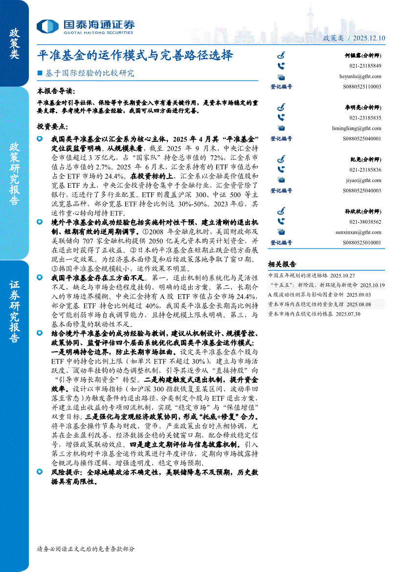 国泰海通证券-基于国际经验的比较研究:平准基金的运作模式与完善路径选择-251210