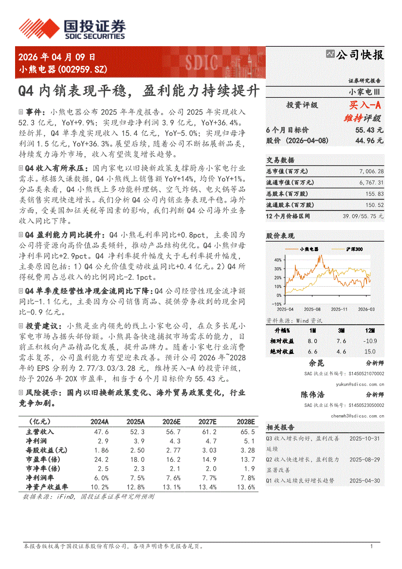 小熊电器:国投证券-小熊电器-002959-Q4内销表现平稳,盈利能力持续提升-260409