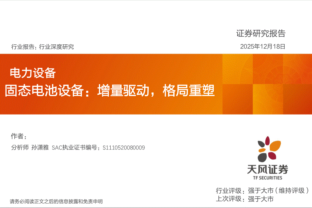 电力设备行业:天风证券-电力设备行业固态电池设备:增量驱动,格局重塑-251218