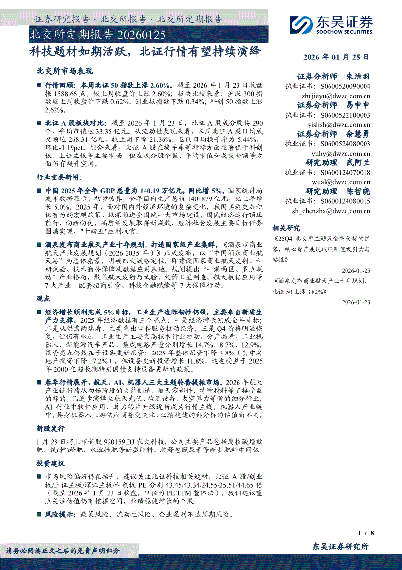 东吴证券-北交所定期报告:科技题材如期活跃,北证行情有望持续演绎-260125