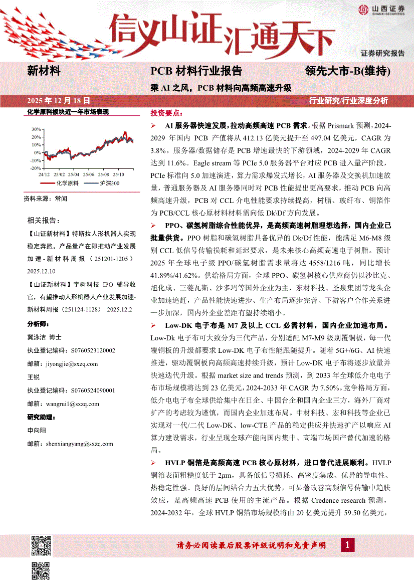 PCB材料行业:山西证券-PCB材料行业报告:乘AI之风,PCB材料向高频高速升级-251218