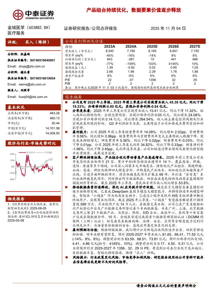 金域医学:中泰证券-金域医学-603882-产品组合持续优化,数据要素价值逐步释放-251104