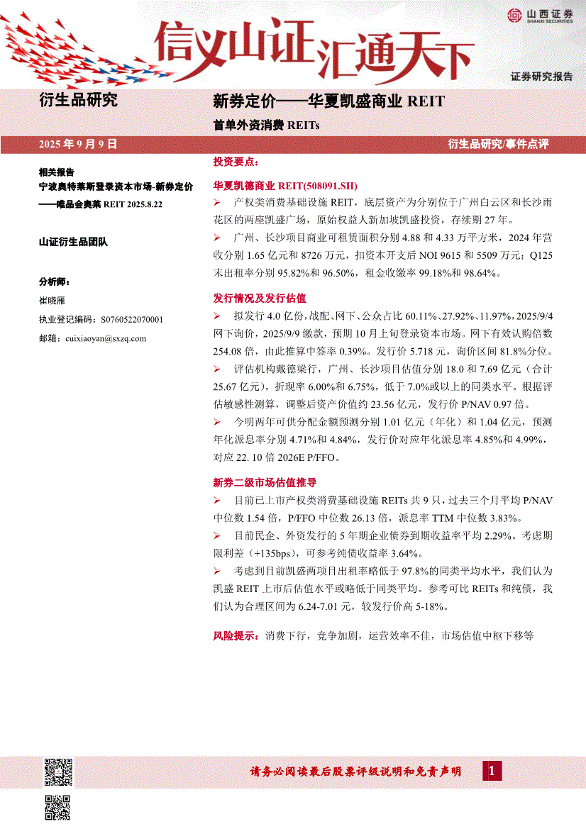 山西证券-新券定价——华夏凯盛商业REIT,首单外资消费REITs-250909