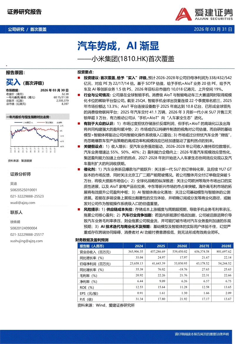 小米集团:爱建证券-小米集团-1810.HK-首次覆盖:汽车势成,AI渐显-260331