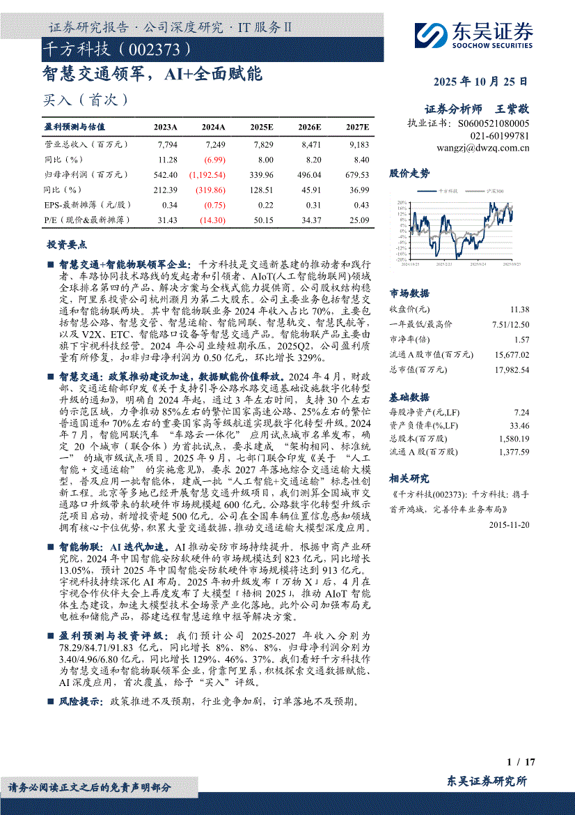 千方科技:东吴证券-千方科技-002373-智慧交通领军,AI+全面赋能-251025