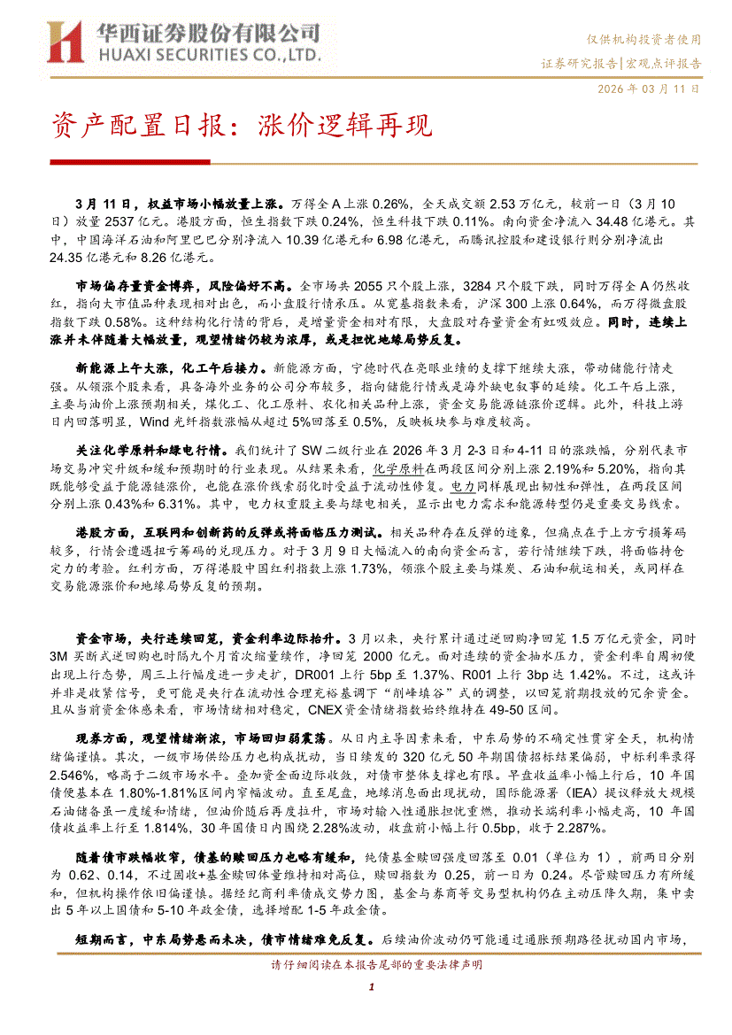 华西证券-资产配置日报:涨价逻辑再现-260311