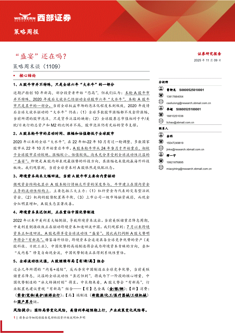 西部证券-策略周末谈(1109):“盛宴”还在吗?-251109