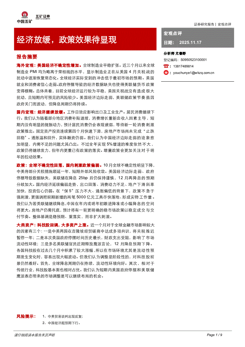 五矿证券-宏观点评:经济放缓,政策效果待显现-251117