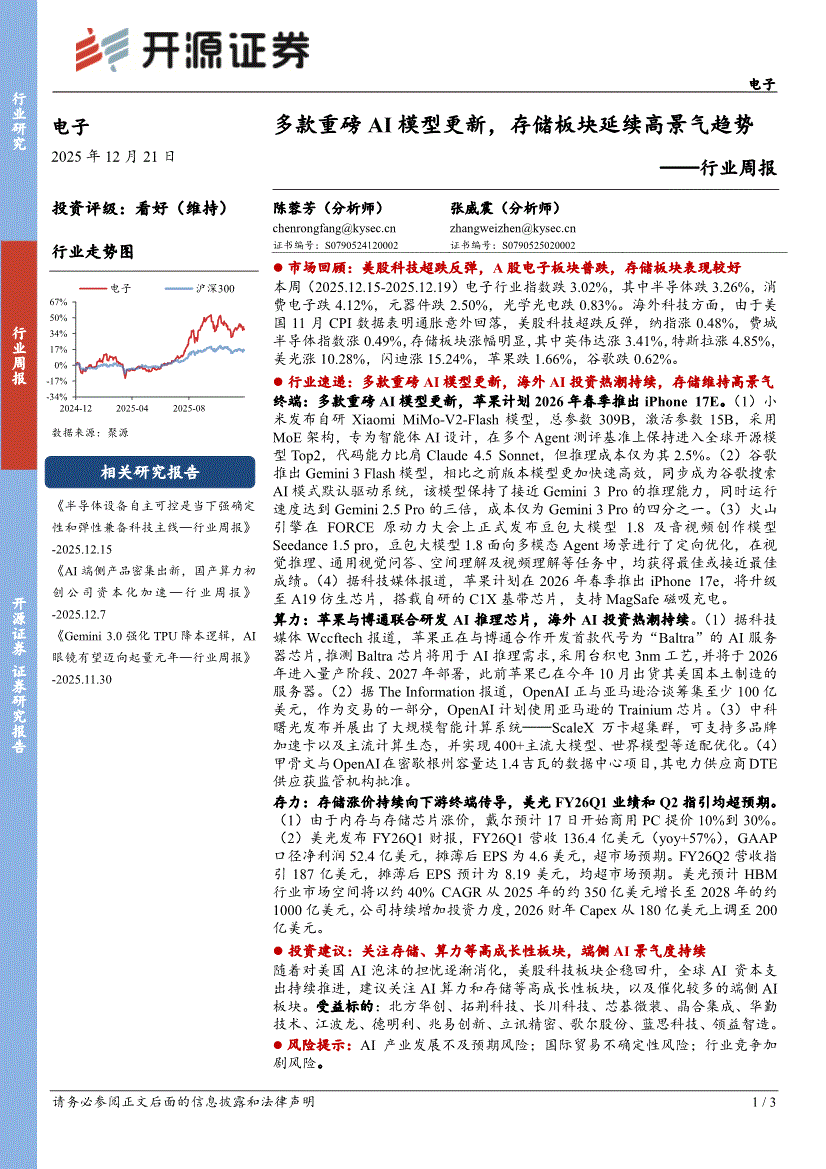 电子行业:开源证券-电子行业周报:多款重磅AI模型更新,存储板块延续高景气趋势-251221