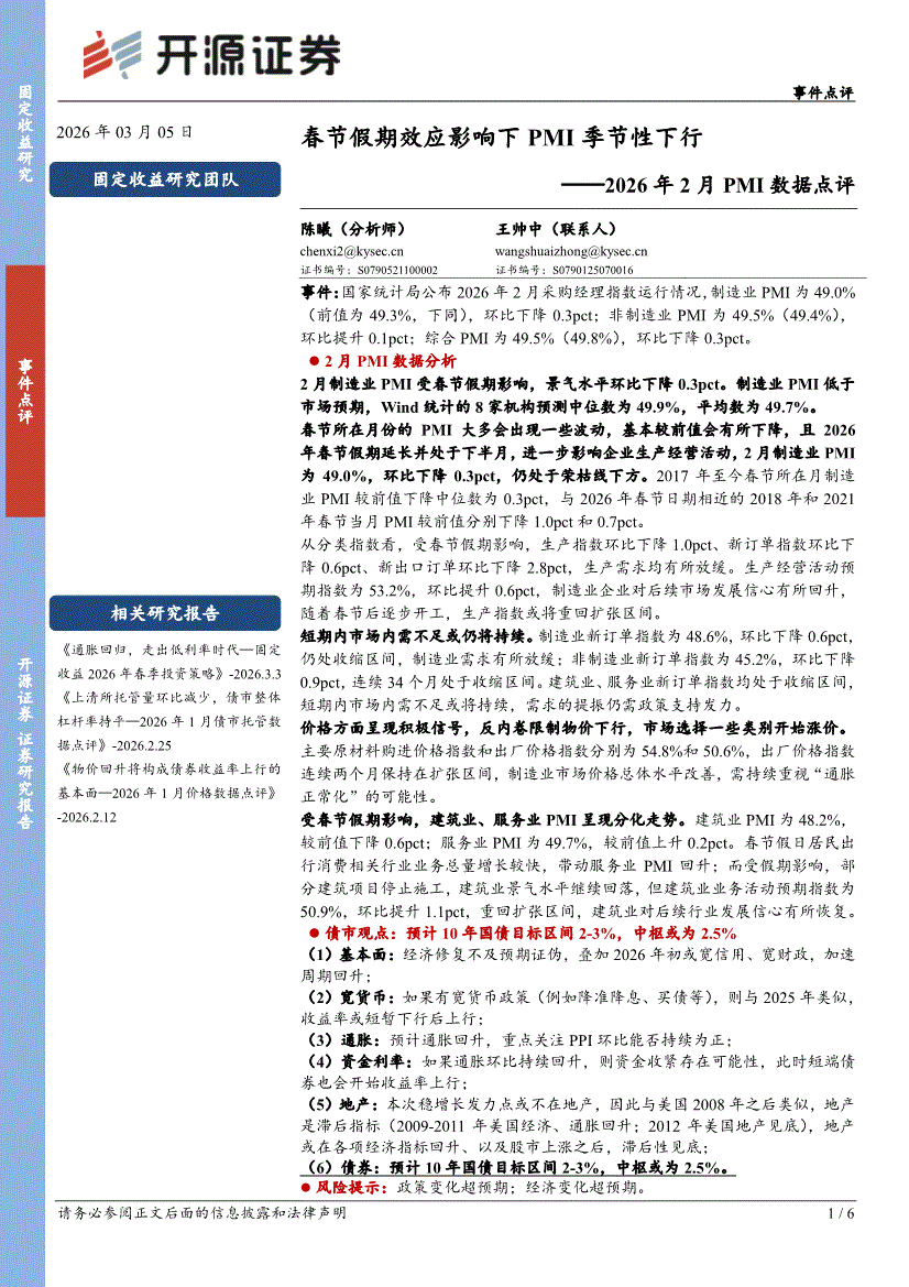 开源证券-2026年2月PMI数据点评:春节假期效应影响下PMI季节性下行-260305