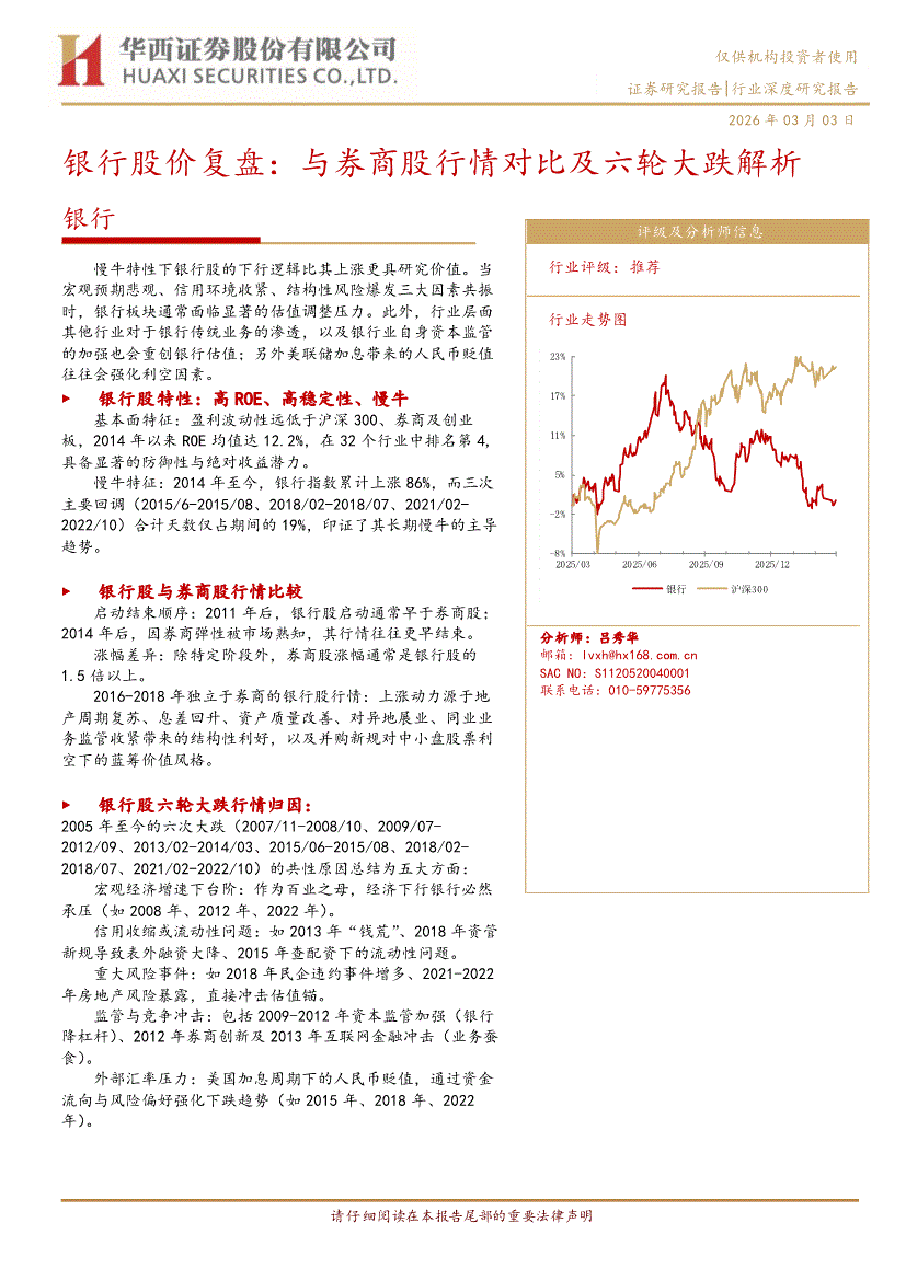 银行业:华西证券-银行业股价复盘:与券商股行情对比及六轮大跌解析-260303