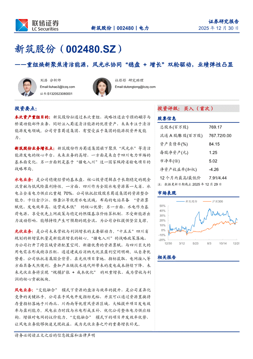 新筑股份:联储证券-新筑股份-002480-重组焕新聚焦清洁能源,风光水协同“稳盘+增长”双轮驱动,业绩弹性凸显-251230