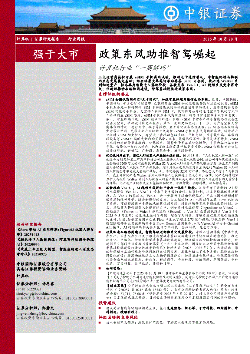 计算机行业:中银国际-计算机行业“一周解码”:政策东风助推智驾崛起-251020