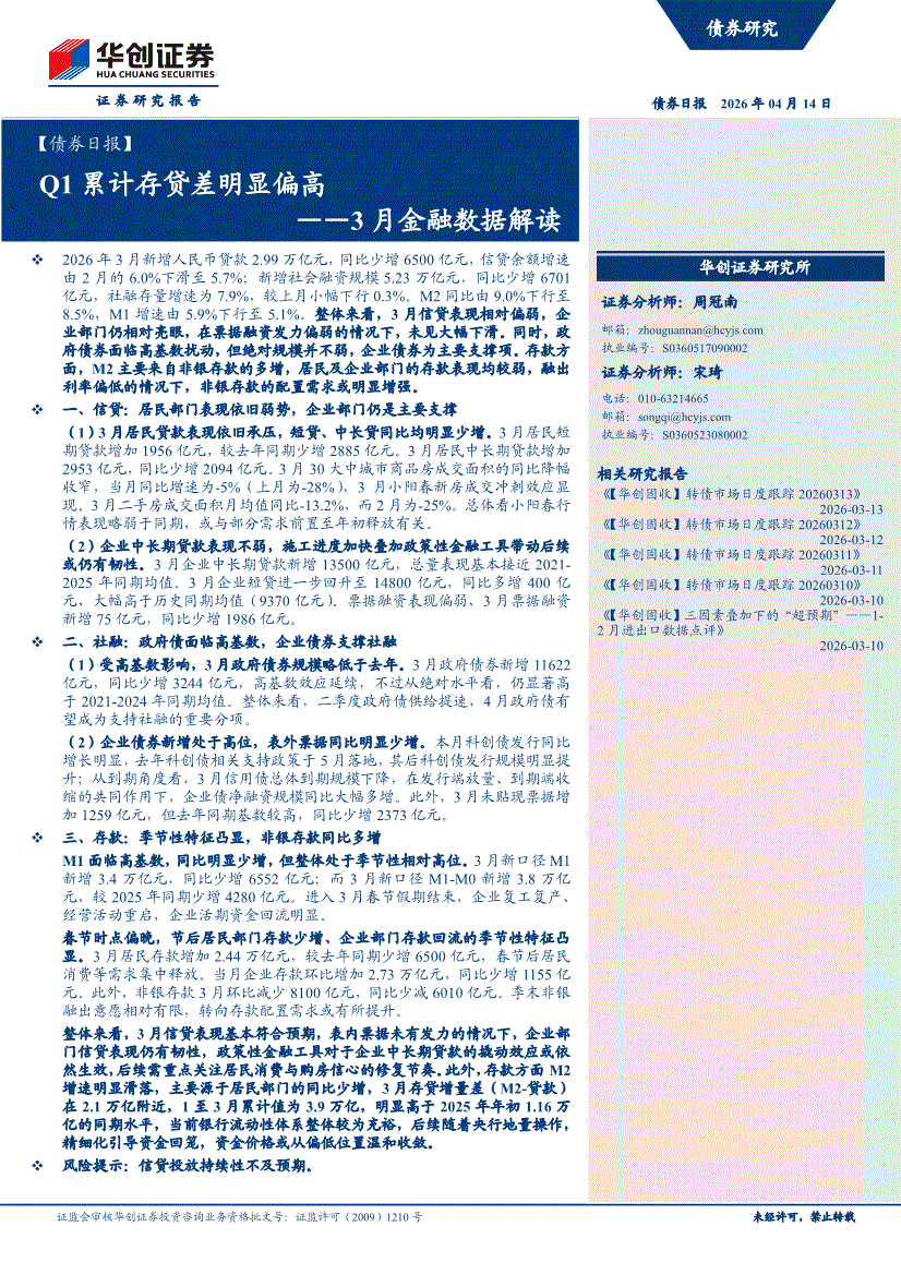 华创证券-3月金融数据解读:Q1累计存贷差明显偏高-260414
