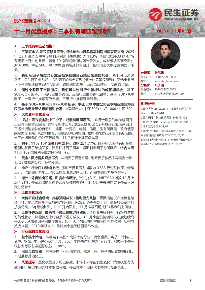 民生证券-资产配置月报202511:十一月配置视点,三季报有哪些超预期?-251105