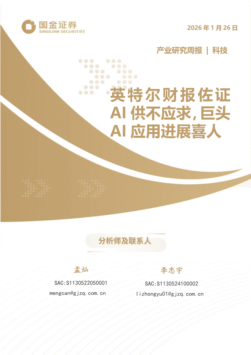 科技行业:国金证券-科技产业研究周报:英特尔财报佐证AI供不应求,巨头AI应用进展喜人-260126