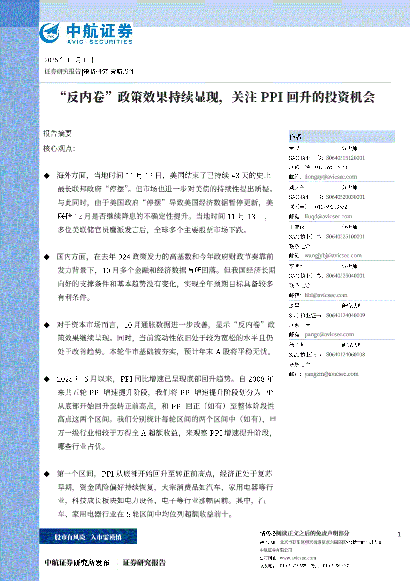 中航证券-“反内卷”政策效果持续显现,关注PPI回升的投资机会-251115