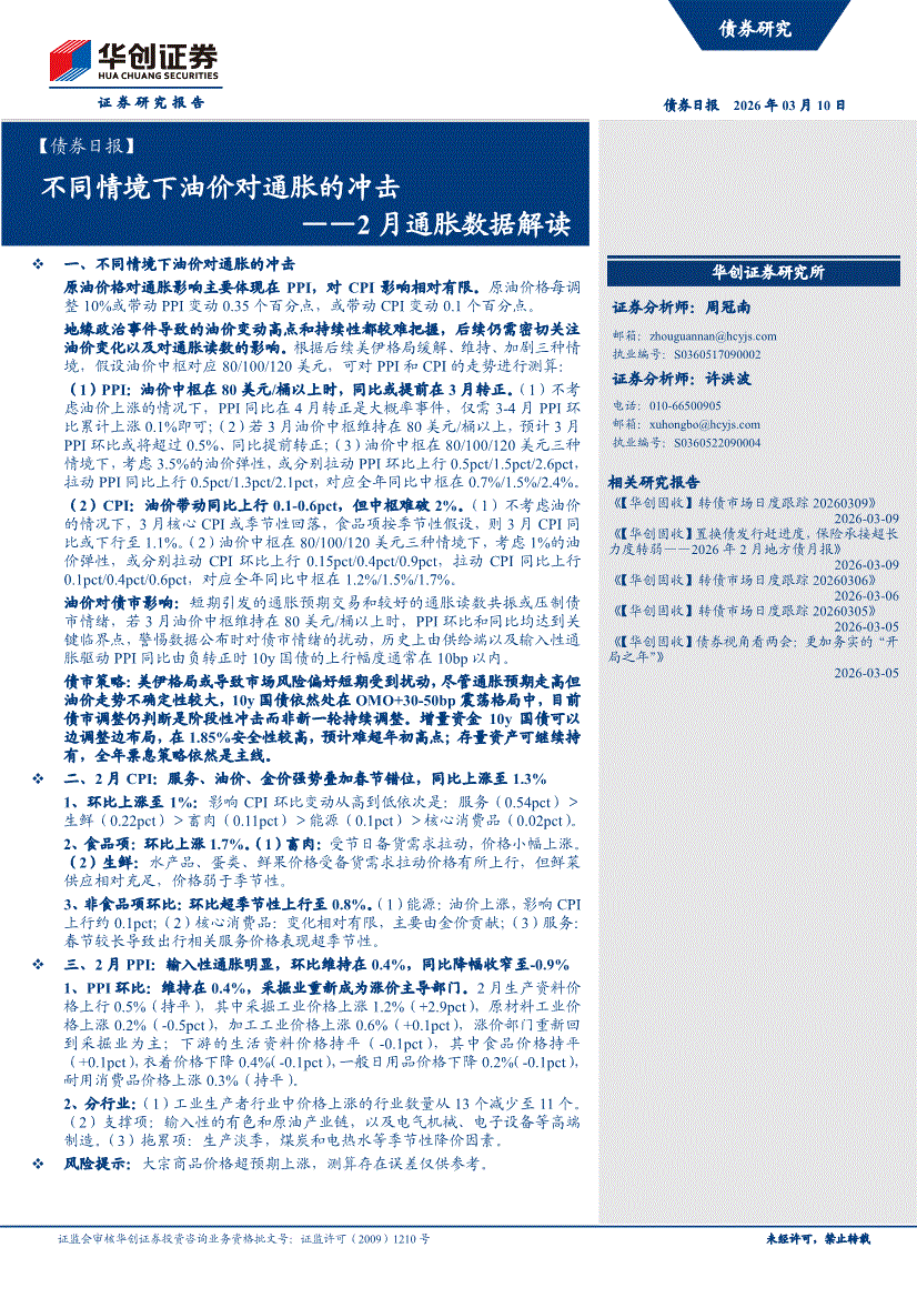 华创证券-2月通胀数据解读:不同情境下油价对通胀的冲击-260310