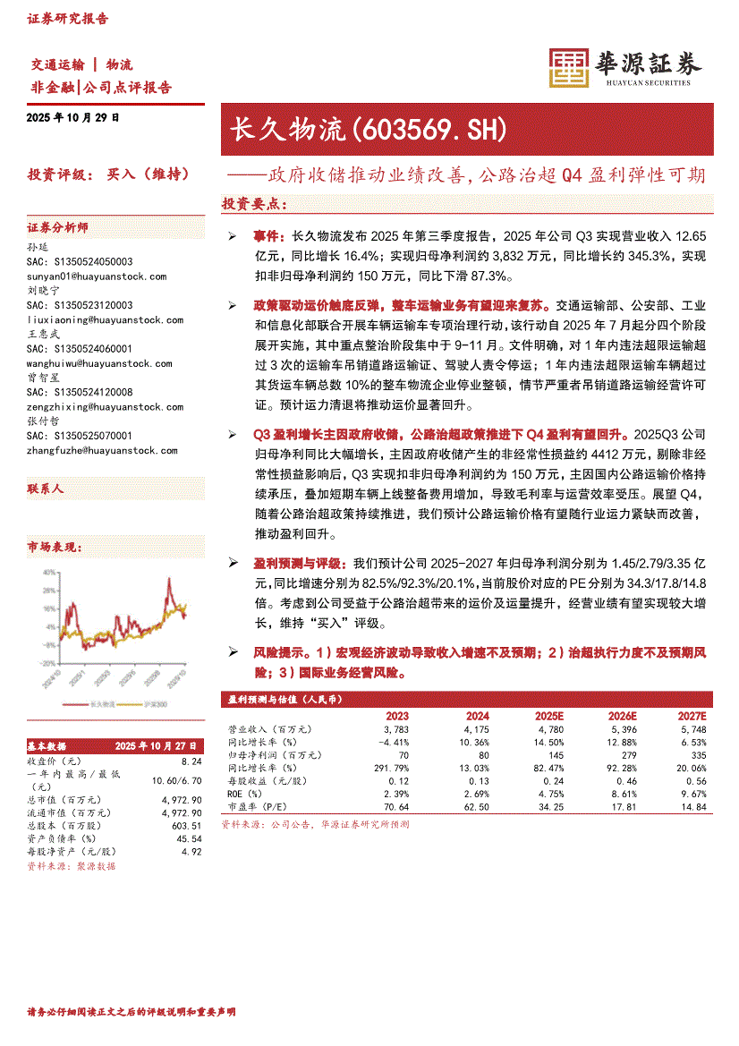 长久物流:华源证券-长久物流-603569-政府收储推动业绩改善,公路治超Q4盈利弹性可期-251029