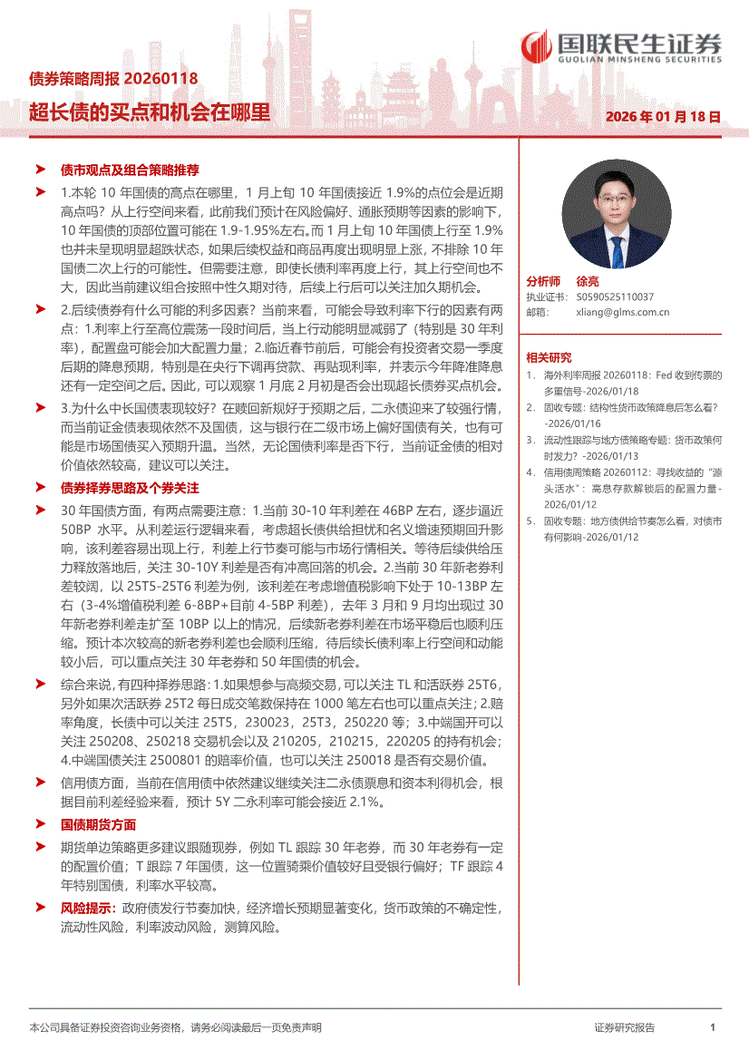 国联民生证券-债券策略周报:超长债的买点和机会在哪里-260118