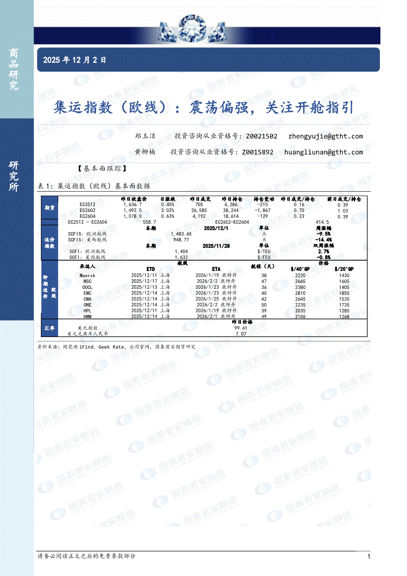 国泰君安期货-集运指数(欧线):震荡偏强,关注开舱指引-251202