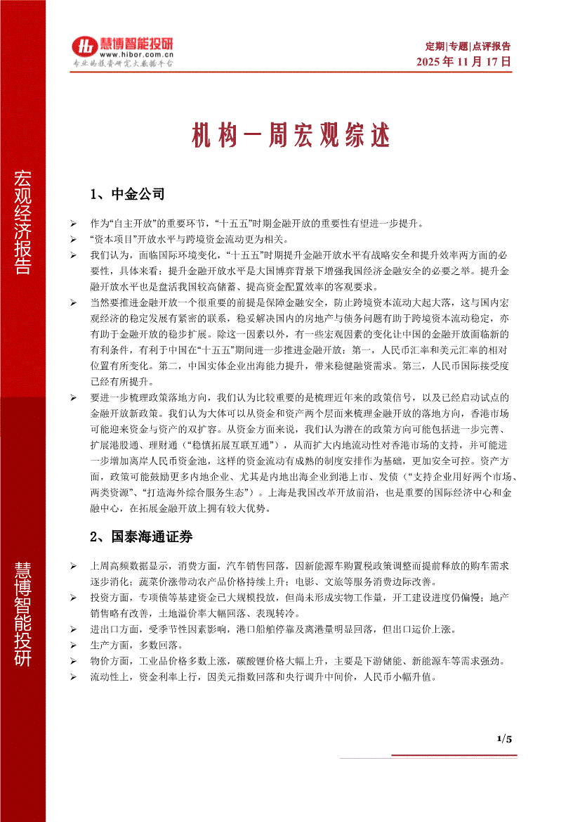 慧博智能投研-机构一周宏观综述-251117
