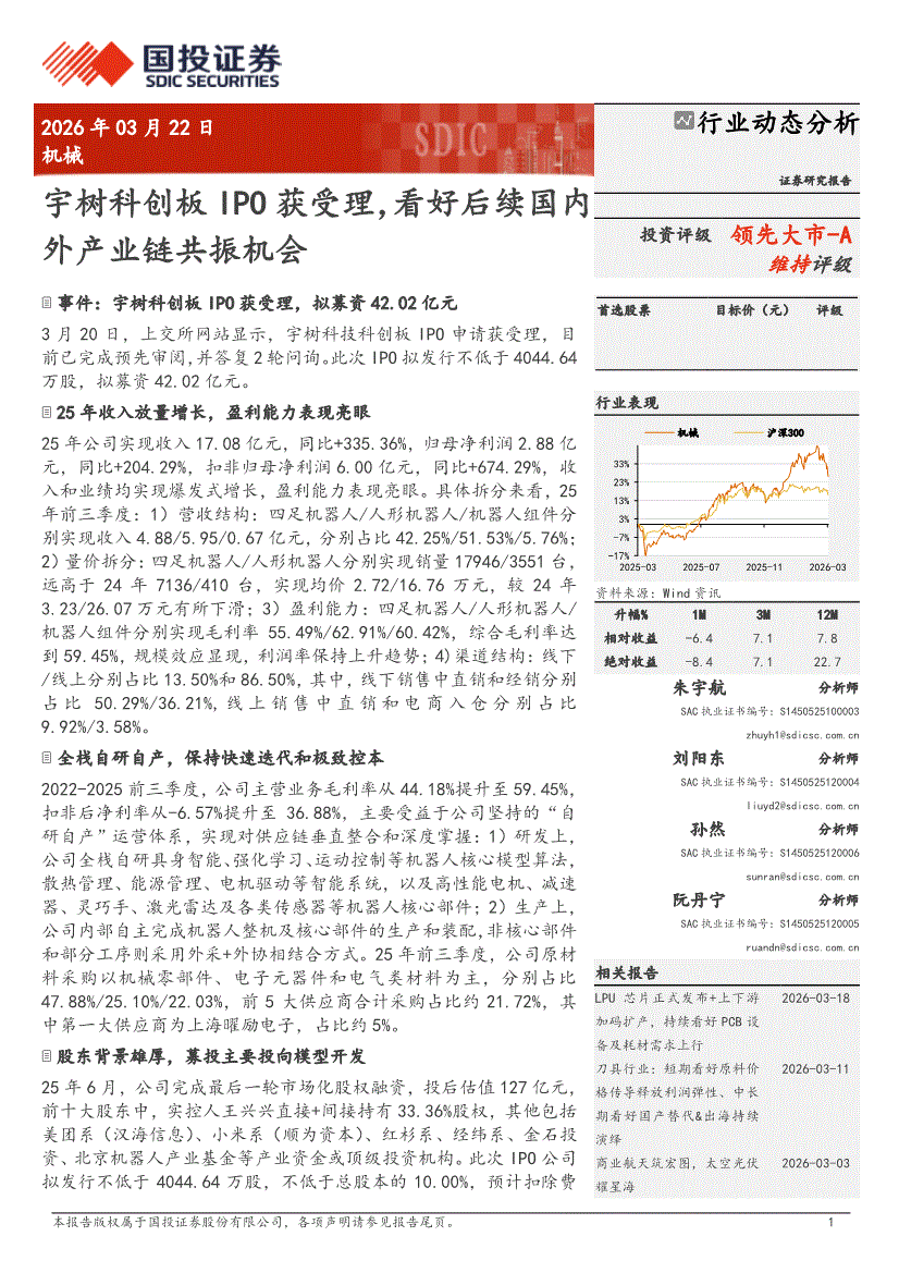 机械行业:国投证券-机械行业:宇树科创板IPO获受理,看好后续国内外产业链共振机会-260322