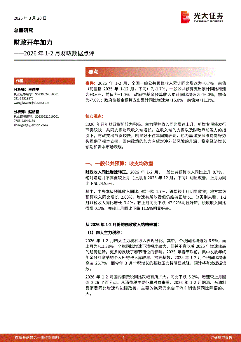 光大证券-2026年1~2月财政数据点评:财政开年加力-260320