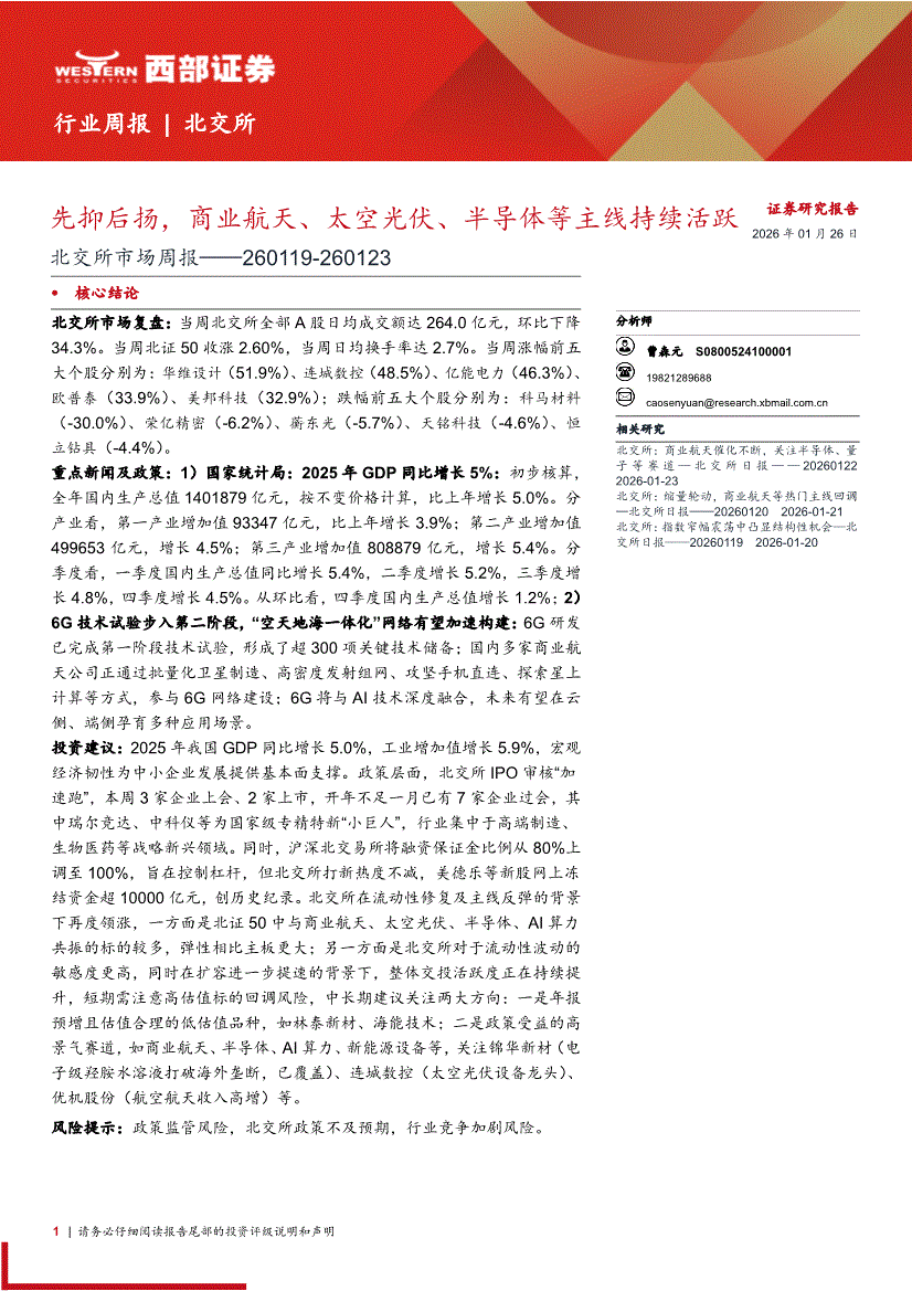西部证券-北交所市场周报:先抑后扬,商业航天、太空光伏、半导体等主线持续活跃-260126