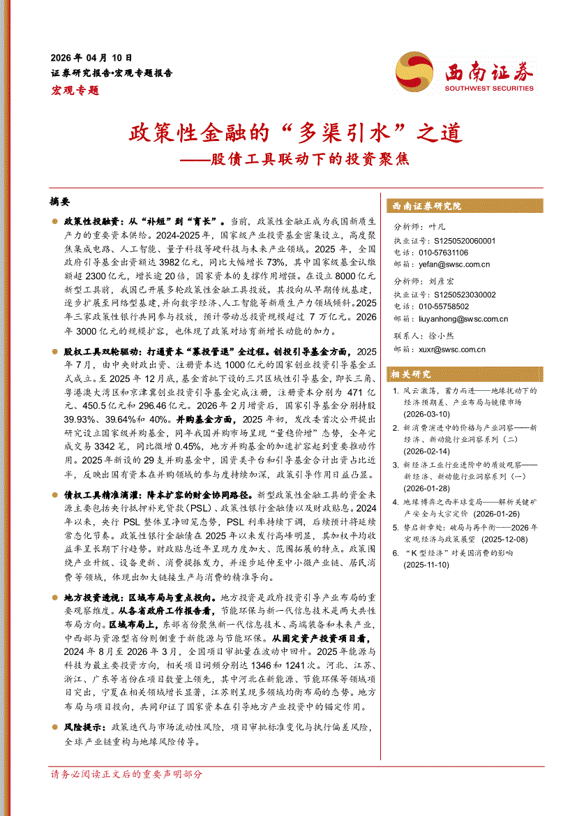 西南证券-政策性金融的“多渠引水”之道——股债工具联动下的投资聚焦-260410