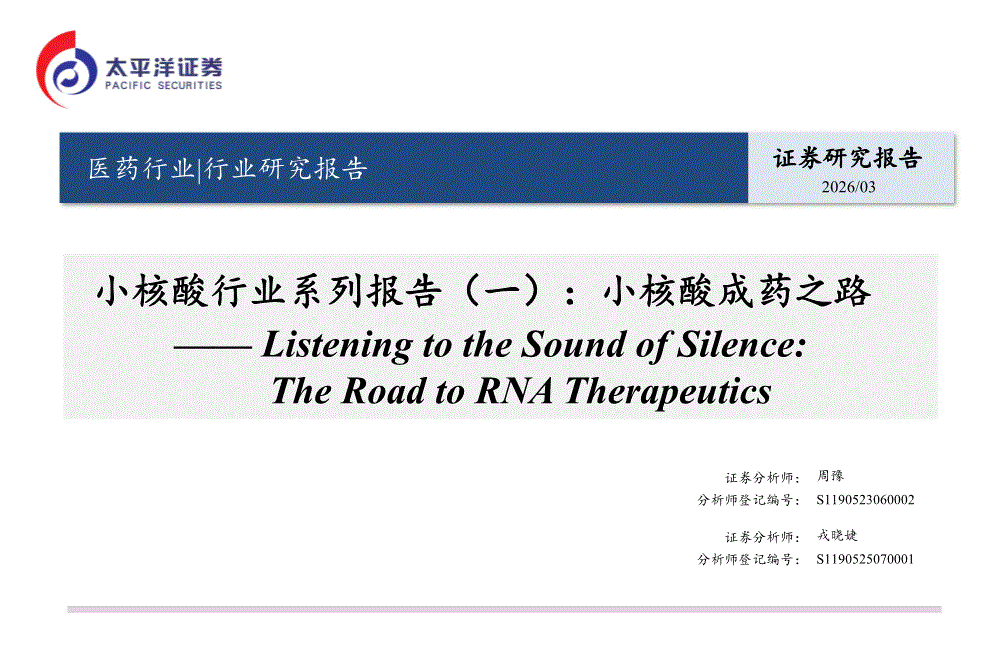医药行业:太平洋证券-小核酸行业系列报告(一):小核酸成药之路——Listening to the Sound of Silence,The Road to RNA Therapeutics-260313