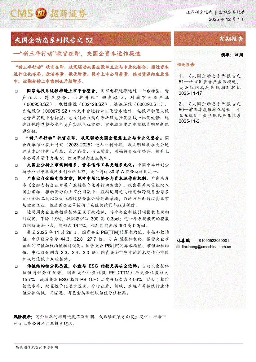 招商证券-央国企动态系列报告之52:“新三年行动”收官在即,央国企资本运作提速-251201