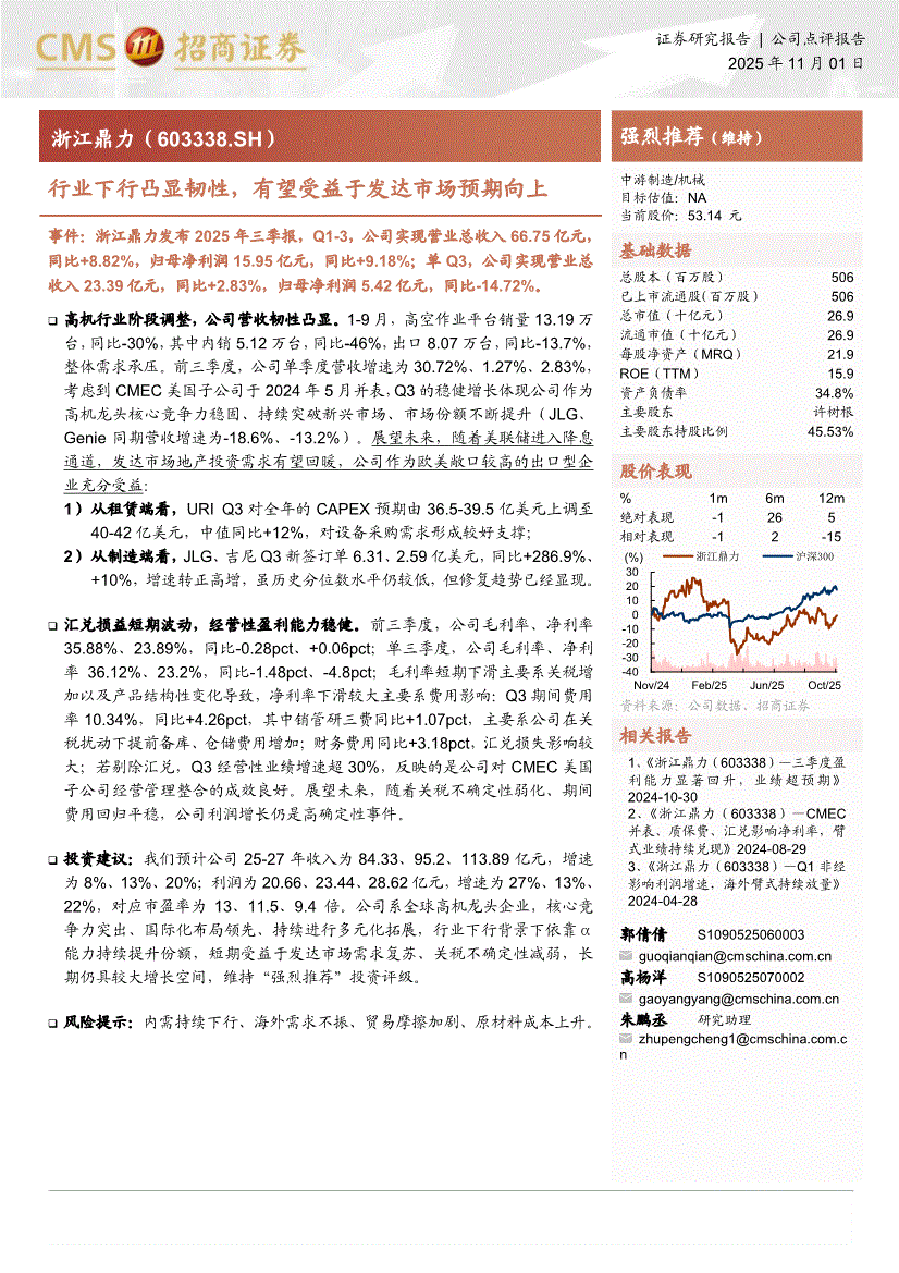 浙江鼎力:招商证券-浙江鼎力-603338-行业下行凸显韧性,有望受益于发达市场预期向上-251101