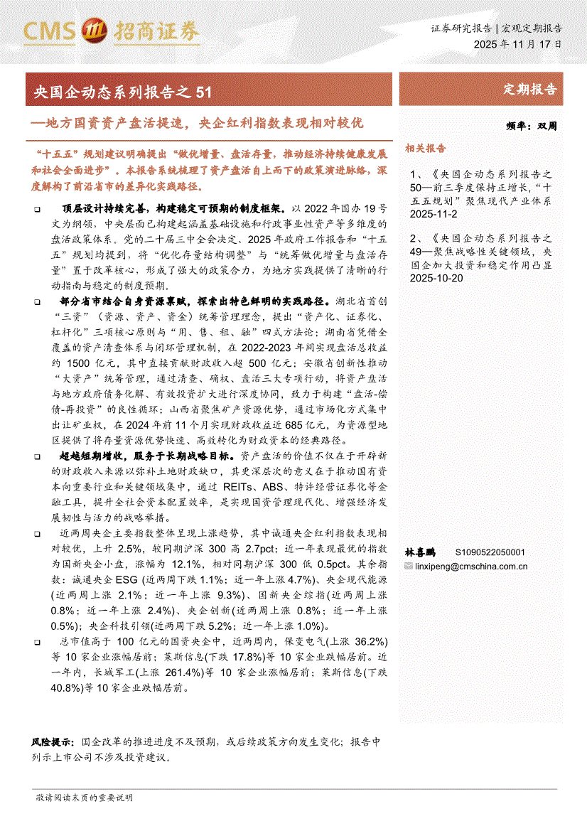 招商证券-央国企动态系列报告之51:地方国资资产盘活提速,央企红利指数表现相对较优-251117