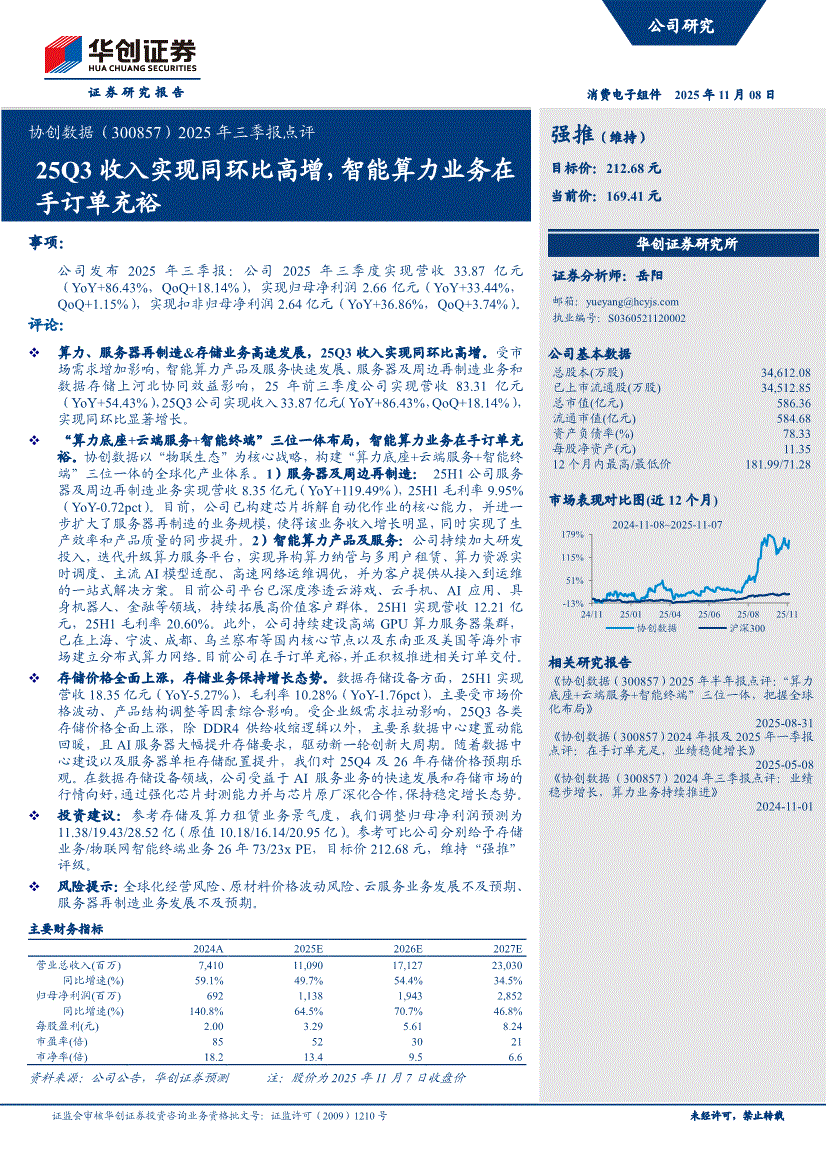 协创数据:华创证券-协创数据-300857-2025年三季报点评:25Q3收入实现同环比高增,智能算力业务在手订单充裕-251108