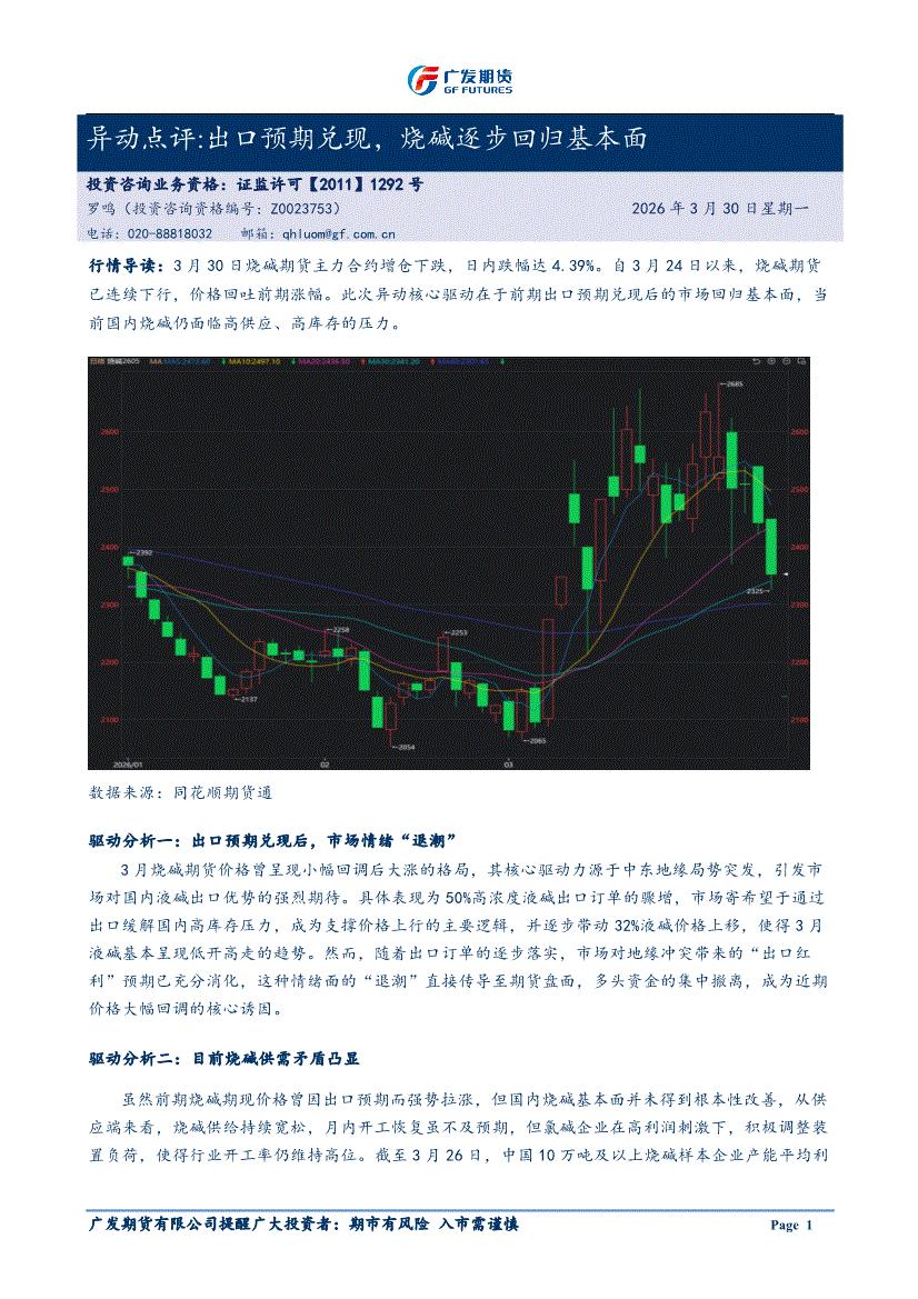 广发期货-异动点评:出口预期兑现,烧碱逐步回归基本面-260330